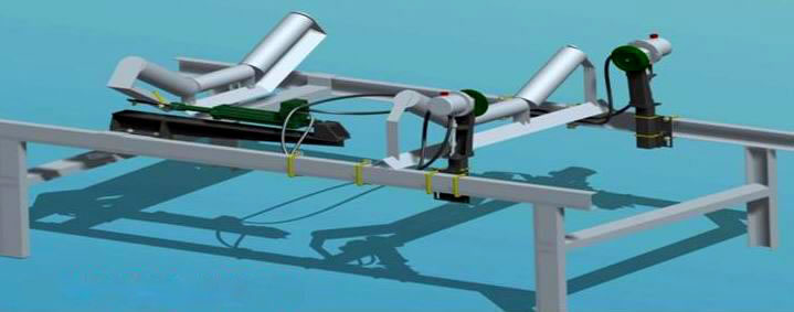 因調(diào)心托輥旋轉(zhuǎn)后使皮帶收縮,會(huì)對(duì)檢驅(qū)輪工作始點(diǎn)產(chǎn)生影響。為了減小這種影響,檢驅(qū)輪、泵組件安裝位置必須離調(diào)心托輥150mm以上,放在調(diào)心托輥前后均可。在沒有調(diào)節(jié)好糾偏支架座及糾偏支架位置之前,螺栓的螺母先不要旋緊,使支架座架能自由滑動(dòng),糾偏支架能輕松上下滑動(dòng),待確定位置之后,再擰緊螺母。
