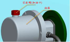 8.加油: 所有部件安裝完畢后就開始給系統(tǒng)加油,加油時(shí)擰下空濾帽,空濾帽位置如圖所示,通過油位計(jì)觀察其油位,加油至油箱的4/5處即可;