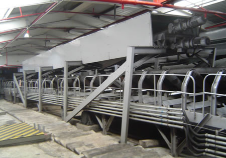 工作原理:電子皮帶秤調(diào)零后,標(biāo)準(zhǔn)重量的滾動型砝碼在皮帶上運(yùn)行時,動態(tài)模擬物料狀態(tài),通過秤體把重量傳給稱重傳感器。同時,速度傳感器將脈沖電壓信號傳至積算器,由積算器進(jìn)行運(yùn)算,進(jìn)行間隔的自動校驗(yàn)。